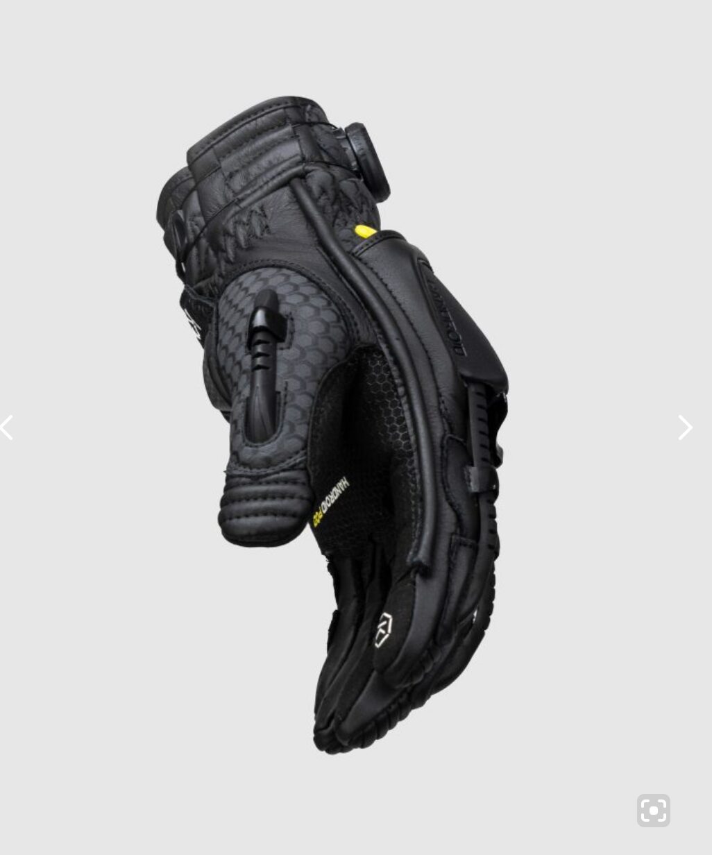 Due to its innovative futuristic look the award winning Handroid Pod is the most striking design of motorcycle glove ever made. The design includes features such as the scaphoid protection system as well as the eye catching exo skeleton finger spines which cover the tops of the fingers for impact protection as well as a unique Boa closing system which always ensures a perfect and secure