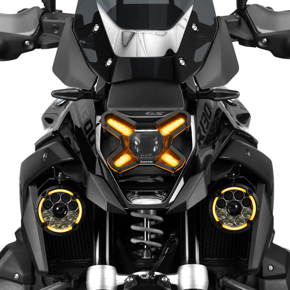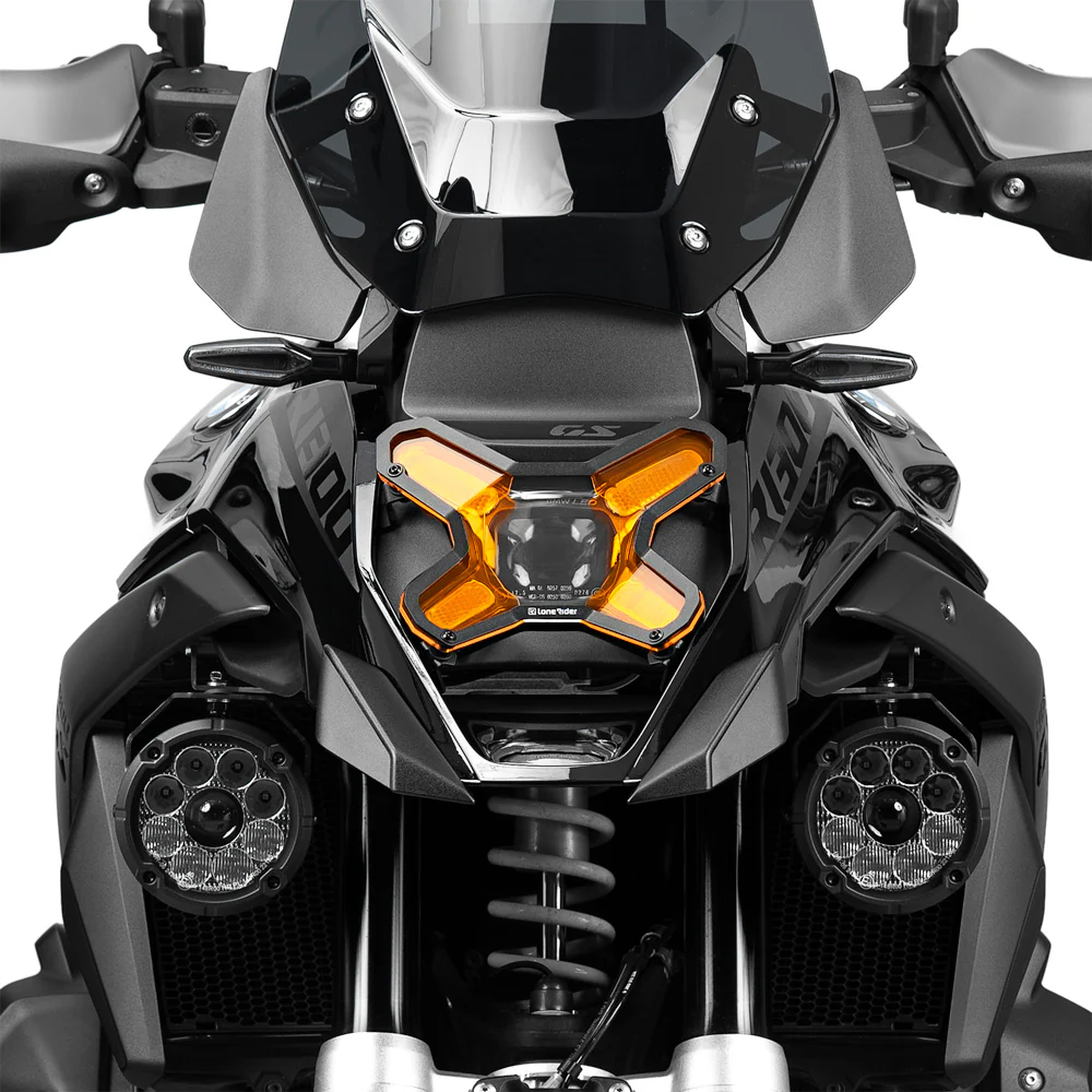 The Lone Rider Headlight Guard Matrix combines premium Makrolon® Polycarbonate with a sleek design for superior durability and clarity. Featuring an amber DRL for enhanced visibility, a clear high-beam section, and quick-release functionality, it ensures maximum protection, easy maintenance, and lasting reliability for all your on- and off-road adventures.